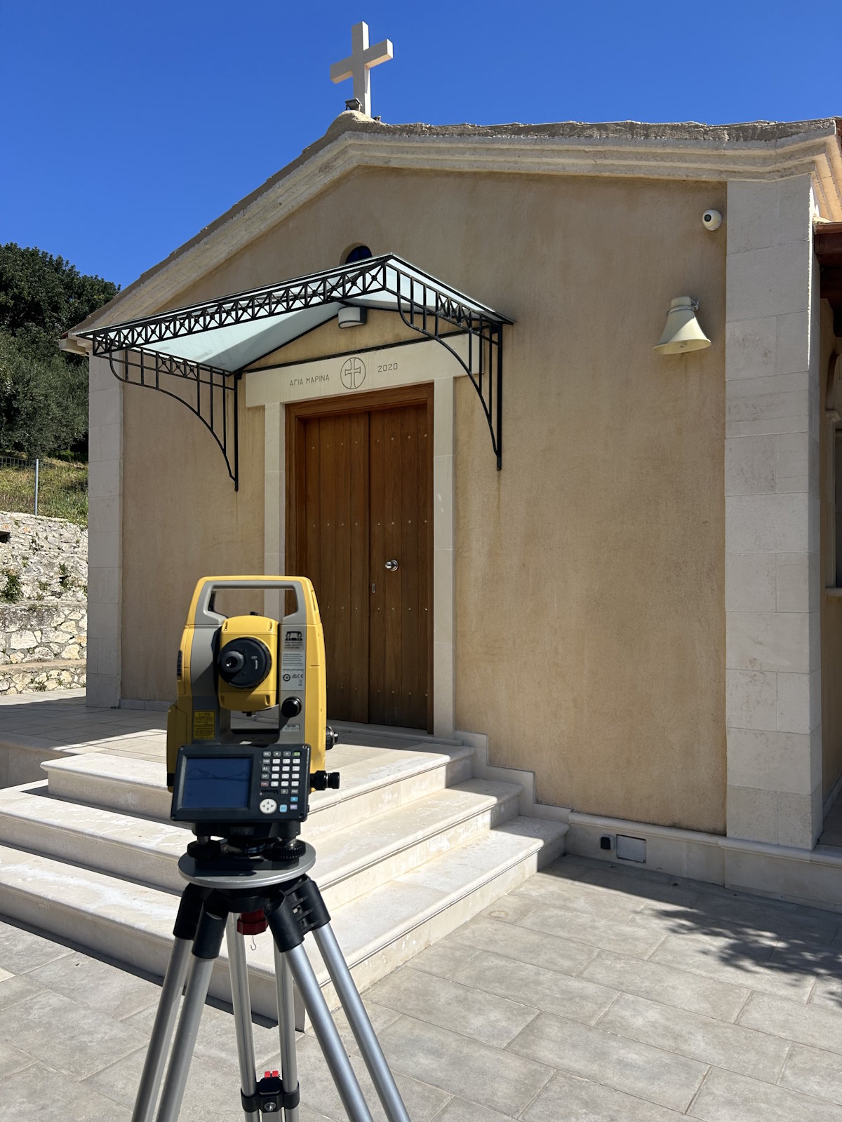 Αποτύπωση οικοπέδου για την ανέγερση Ναίσκου Αγίας Μαρίνας Λιθακιάς. Πλήρης οριζοτνιογραφική αποτύπωση για την σύνταξη διαγράμματος για την τακτοποίηση αυθαιρέτων κατασκευών του.